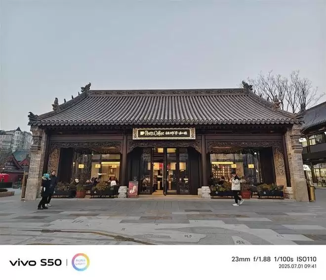 在这条街道上,S50的表现无疑是相当优异的,主摄23mm焦段偏广,在缩放成两倍46mm的状态下依然清晰。尤其是像展现主体文字细节,地面反光、高动态范围比的情况下。明暗交界处明显,整张照片更有质感。