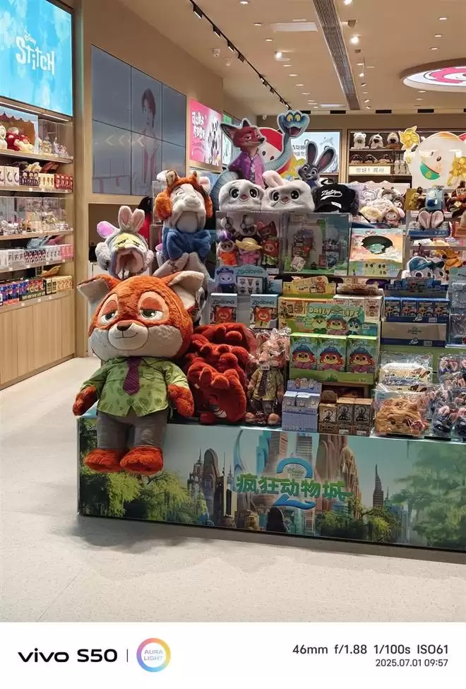 门店内部光源丰富,但没有明显过曝,高光压得住,灯带细节保持良好。外部环境偏暗,但墙体纹理依旧清晰,整体动态范围表现不错,在高动态范围比上处理得挺稳。商品区域的色彩干净、浓度适中,没有出现涂抹感。