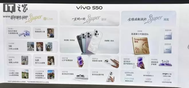 IT之家12月15日消息,vivo S50手机于今晚正式亮相。新机搭载第三代骁龙8s处理器,配备索尼IMX882传感器以及6500mAh蓝海电池,起售价为2999元,将于12月19日开售。