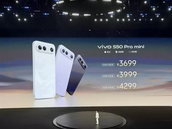 vivo S50 Pro mini提供三个存储版本,12GB+256GB售价3699元,12GB+512GB售价3999元,16GB+512GB售价4299元。