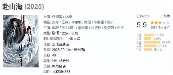 所以《赴山海》播出以后,尽管热度不小,但评分却一直不高,只有5.9分,没能超过及格线。