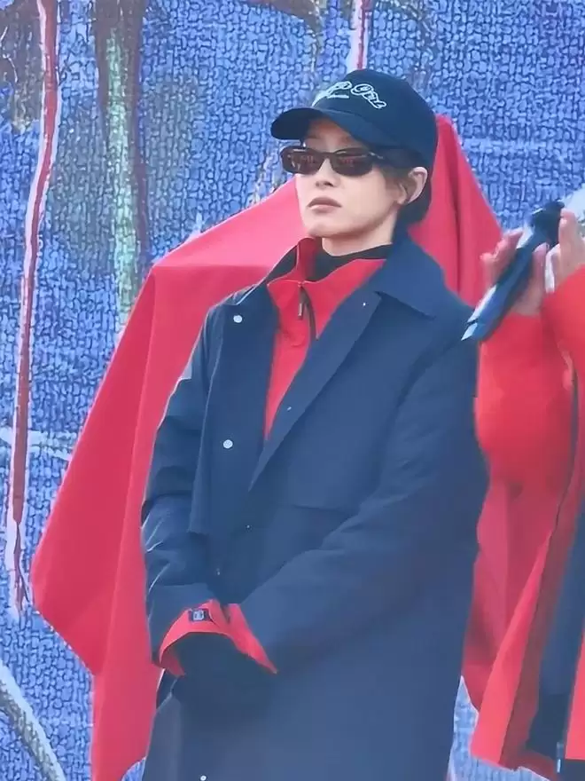 挥手打招呼时很有气场,可仔细看,肩膀有点僵硬,可能是新剧压力大,表情虽努力保持活力,但嘴角下拉的瞬间暴露了内心的紧绷。