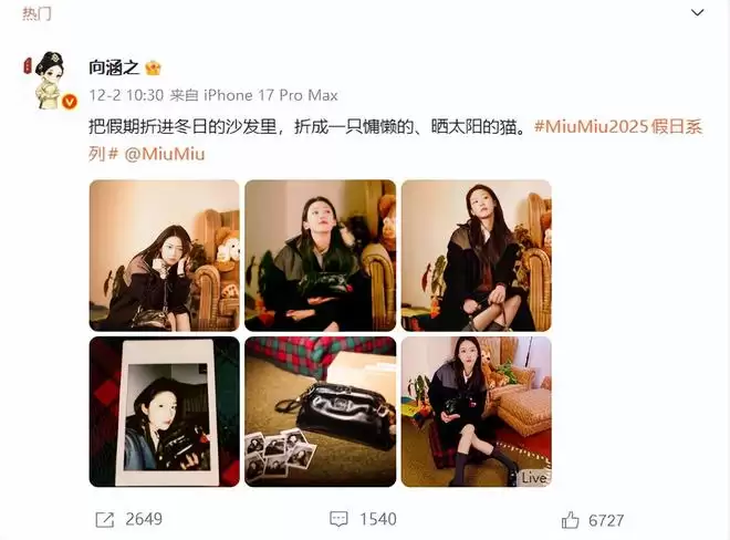 通过这部剧向涵之的热度不断上升,还拍摄了MiuMiu2025假日系列大片