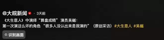 就连吴樾本人都为此做出回应,表示第一次演绎坏得这么彻底的角色,以至于很多人都没认出他。