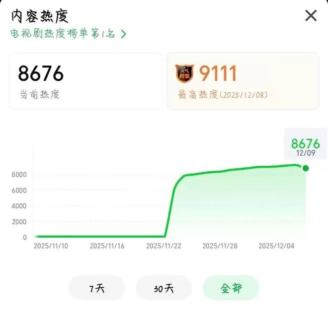 自开播以来它的站内热度就没下过8000,位居热播榜首。