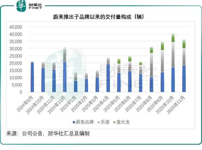 见下表,自去年9月推出乐道、今年4月推出萤火虫系列后,乐道与萤火虫成为了撑起蔚来交付量增长的重要力量。