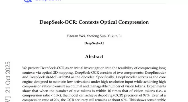 当我们谈论人工智能的发展时,有一个有趣的现象值得关注:人类能够一眼看到一张包含大量文字的图片,就立刻理解其中的内容,但让计算机做同样的事情却异常困难。更有意思的是,如果我们能让计算机像人类一样"看图读字",是否能解决大语言模型处理超长文本时面临的计算瓶颈问题呢? 这项由DeepSeek-AI研究团队的魏浩然、孙耀峰、李玉昆等研究者完成的突破性工作发表于2025年10月,论文编号为arXiv:2510.18234v1。研究团队开发了一个名为DeepSeek-OCR的创新模型,首次系统性地探索了通过"光学压缩"技术来处理超长文本的可能性。简单来说,他们让计算机学会了把大段文字"拍成照片",然后通过"看照片"来理解内容,而不是逐字逐句地阅读,从而大幅提升了处理效率。 这项研究的核心理念来源于一个古老的说法:"一图胜千言"。研究团队发现,当我们把一篇包含1000个文字的文档转换成图像时,计算机只需要用不到100个"视觉标记"就能准确理解其内容,相当于实现了10倍以上的压缩比。更令人惊讶的是,即使在20倍压缩比的极端情况下,模型仍能保持60%的准确率。这就像是把一本厚厚的小说压缩成一张概览图,却仍能让读者理解故事的主要情节。 DeepSeek-OCR模型由两个核心组件构成,就像一个高效的"翻译系统"。第一个组件叫做DeepEncoder,可以想象成一个专业的"摄影师",它的任务是将文档图像转换成计算机能够理解的压缩信息。第二个组件是DeepSeek3B-MoE解码器,相当于一个经验丰富的"阅读专家",负责从压缩信息中准确还原出原始文本内容。 一、革命性的DeepEncoder:重新定义视觉文本理解 要理解DeepEncoder的工作原理,我们可以把它比作一个高效的文档扫描系统。传统的文本处理方式就像用放大镜逐字逐句地阅读一本书,每个字都需要单独处理,效率极其低下。而DeepEncoder则采用了一种全新的"快照式阅读"方法。 DeepEncoder的内部结构体现了精妙的设计哲学。它由两个主要部分组成:第一部分基于SAM(Segment Anything Model)架构,包含约8000万参数,专门负责感知和识别图像中的文字细节;第二部分基于CLIP架构,包含约3亿参数,负责理解文字的含义和上下文关系。这两个部分之间通过一个16倍压缩模块连接,就像一个精密的"信息过滤器",确保在保留关键信息的同时大幅减少数据量。 这种设计的巧妙之处在于分工明确:第一部分专注于"看清楚",使用窗口注意力机制仔细观察图像的每个局部区域,确保不遗漏任何重要细节;第二部分专注于"理解好",使用全局注意力机制把所有信息整合起来,形成对整个文档的完整理解。这就像一个经验丰富的速读专家,既能快速浏览全文把握大意,又能准确捕捉关键细节。 更值得注意的是,DeepEncoder支持多种分辨率模式,从512×512到1280×1280不等,甚至还有一种叫做"Gundam模式"的动态分辨率处理方式。这种灵活性让模型能够根据文档的复杂程度自动调整处理策略,就像一个智能相机能够根据拍摄场景自动选择最佳设置一样。 二、数据引擎:构建多语言文档理解的知识宝库 DeepSeek-OCR的强大能力离不开其丰富多样的训练数据。研究团队构建了一个庞大的数据引擎,就像建造一座包罗万象的图书馆,收录了各种类型的文档和图像。 这个数据引擎包含四个主要类别的训练素材。首先是OCR 1.0数据,主要包括传统的文字识别任务,涵盖了3000万页的PDF文档,支持约100种语言。这些文档就像是基础的读物,帮助模型学会最基本的"看字识词"能力。研究团队不仅收集了粗略标注的文档(通过自动提取获得),还人工制作了精细标注的样本,包括200万页中文文档和200万页英文文档,这些精细标注包含了文档的布局信息和文字的精确位置。 接下来是OCR 2.0数据,这部分更像是"专业课程",包括图表解析、化学公式识别和几何图形理解等高级任务。研究团队使用专业工具生成了1000万张图表图像,主要包括常见的线图、柱状图、饼图和复合图表。对于化学公式,他们从PubChem数据库获取SMILES格式的化学结构,然后渲染成图像,构建了500万个化学公式样本。几何图形方面,他们参考了Slow Perception方法,生成了100万个平面几何解析样本。 第三类是通用视觉数据,占总训练数据的20%左右。这些数据让DeepSeek-OCR不仅仅是一个文档处理工具,还具备了一定的通用图像理解能力,就像让一个专业的文字专家同时具备了基本的图像常识。 最后一类是纯文本数据,占训练数据的10%。这部分数据确保模型保持了良好的语言理解能力,不会因为过度专注于视觉处理而失去对语言本身的敏感性。 三、训练策略:从基础认知到高级理解的渐进学习 DeepSeek-OCR的训练过程采用了一种渐进式的学习策略,就像培养一个从初学者到专家的成长路径。整个训练分为两个主要阶段,每个阶段都有明确的目标和任务。 第一阶段专门训练DeepEncoder,就像先让学生学会基本的阅读技能。在这个阶段,研究团队使用了所有的OCR数据和从LAION数据集采样的1亿通用图像数据。训练采用了下一个词预测的框架,让模型学会从视觉信息中准确预测文本内容。这个过程持续了2个周期,使用了1280的批次大小,学习率设置为5e-5,序列长度为4096。 第二阶段是整个DeepSeek-OCR模型的联合训练,相当于让已经掌握基本技能的学生开始处理复杂的综合问题。在这个阶段,模型需要学会将DeepEncoder提取的视觉特征与语言模型的文本生成能力完美结合。训练数据的配比经