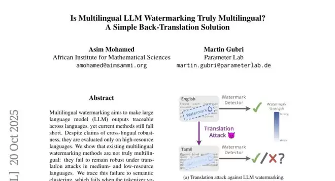 在我们日益依赖人工智能生成内容的时代,一个看似技术性的问题正悄然演变成一场关于语言公平的深刻讨论。非洲数学科学研究院的阿西姆·穆罕默德与德国Parameter Lab的马丁·古布里于2025年10月联合发表了一项突破性研究,该研究发表在计算语言学领域的顶级学术期刊上,论文编号为arXiv:2510.18019v1。这项研究首次系统性地揭示了当前AI文本水印技术在多语言环境下的严重缺陷,并提出了一种名为STEAM的创新解决方案。
