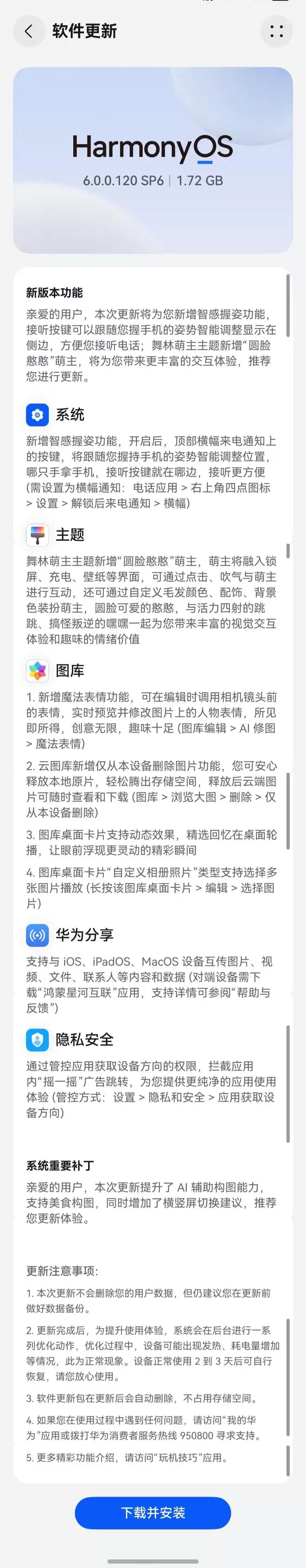 华为Mate70/Pura 70推送鸿蒙HarmonyOS 6.0.0.120 SP6升级