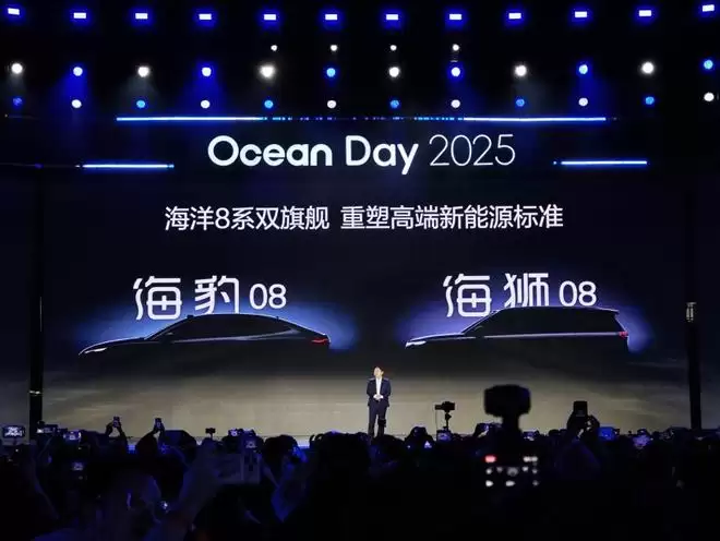 网易汽车12月16日讯 比亚迪海洋网四周年 Ocean Day 用户盛典于12月15日晚隆重举行。活动期间,比亚迪海洋网销售事业部总经理张卓正式揭晓,海洋网旗下两款备受瞩目的全新旗舰车型已正式定名:旗舰轿车定名海豹08,旗舰SUV定名海狮08。两款新车将于2026年第一季度正式亮相,预示着海洋网产品矩阵即将迈入一个全新阶段。