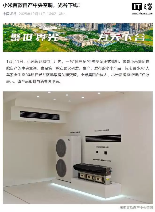 小米空调亮相:米家首款自研双出风中央空调武汉投产