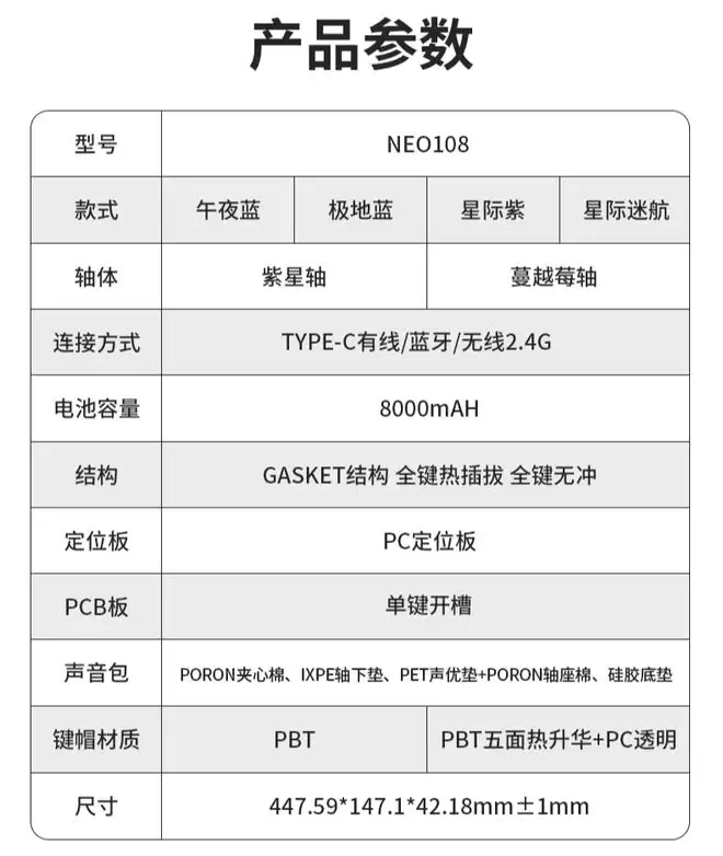 NEO108三模机械键盘发布:全配列布局,到手价239元