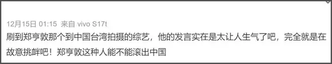 对于郑亨敦的一边说自己不懂,一边又在节目上公开谈论两岸问题一事,网友非常不满。而节目最后居然还没有剪辑地播出了,网友直言建议全面封杀。