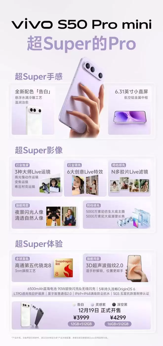 与此同时,S50系列通过搭载高通骁龙8系旗舰芯、LPDDR5X和UFS 4.1组成“性能铁三角”,6500mAh蓝海电池搭配90W闪充,IP68+IP69满级防水,以及承诺5年持久流畅的OriginOS 6,将诸多过往仅在顶级旗舰上出现的配置“普惠化”,是名副其实的“战斗天使”,让年轻用户无需背负过高成本,即可享受到稳定、可靠且持久的旗舰级体验闭环。