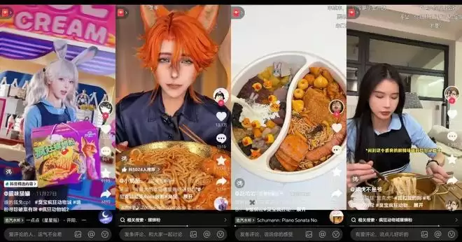 美食博主赵哈哈的视频中,螺蛳粉成了和奶茶双拼的“火锅搭子”,解锁日常生活中的双倍“小确幸”;宠物博主胖虎不是爷的创作中,螺蛳粉成为陪伴毛孩子一天后简便又美味、“对自己好点”的大餐;剧情类博主肖宇航的内容里,螺蛳粉是深夜填饱肚子,“再幸福不过的事”;二次元博主腥味猫罐的视频里,臭宝螺蛳粉是朱迪尼克变身时的“灵魂转场”神器……