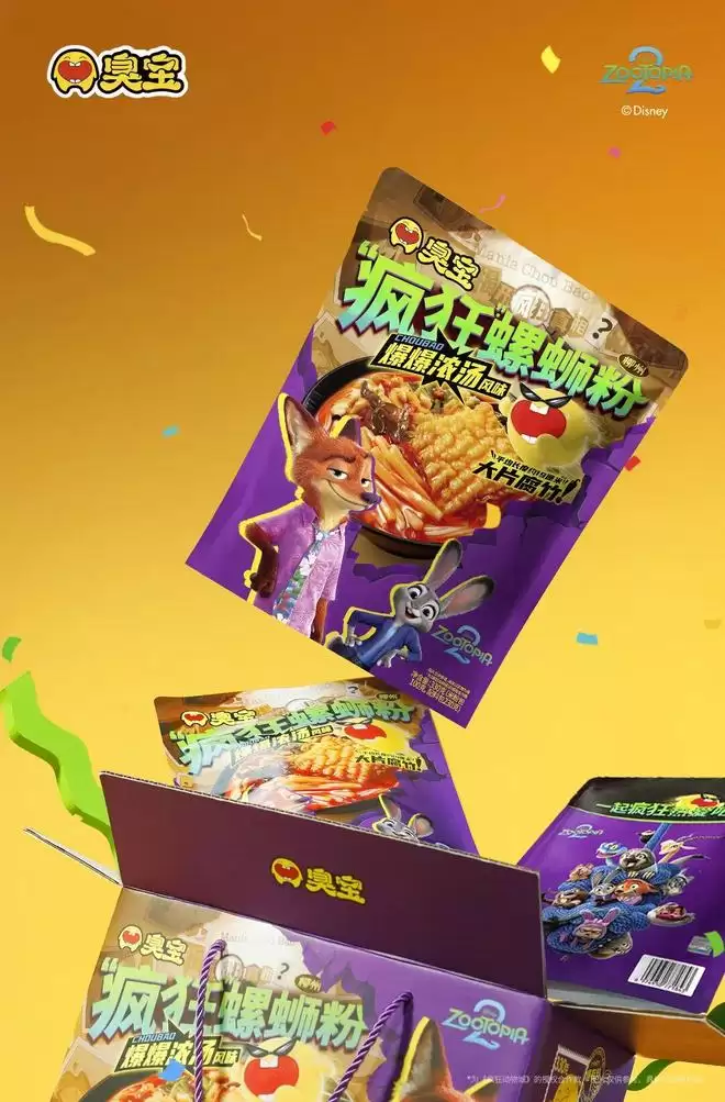 此外,《疯狂动物城2》作为国民度极高的动画IP,其广泛的受众基础和强大的“破圈”能力,也为臭宝带来了更多关注。许多原本非螺蛳粉的消费群体,可能因为对尼克、朱迪的喜爱而关注到此次合作,从而产生“不妨一试”的好奇心,为品牌打开新的用户入口。