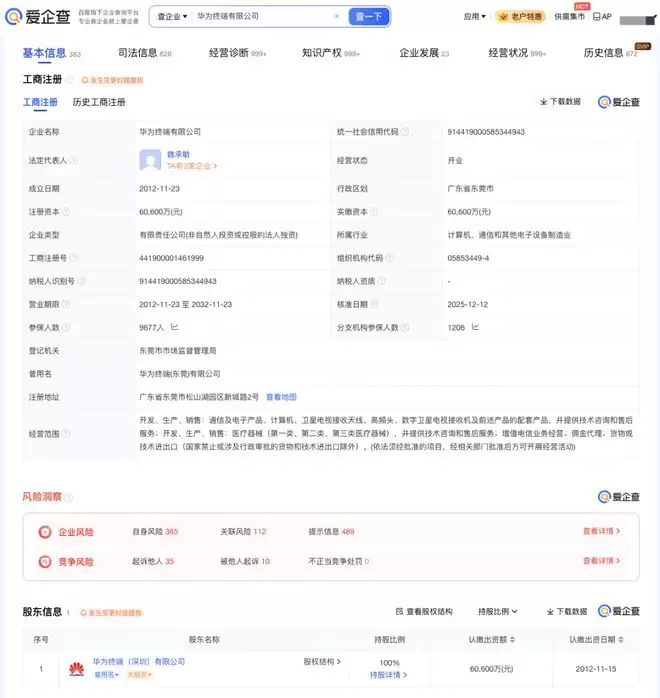 天眼查工商信息显示,近日,华为终端有限公司发生工商变更,郭平卸任董事长,由余承东接任,孟晚舟、徐直军等卸任董事,同时,多位高管发生变更。华为终端有限公司成立于2012年11月,法定代表人为魏承敏,注