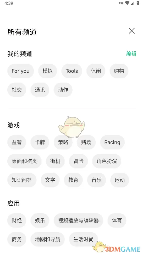 3、在分类页面,内容清晰地分为“游戏”和“应用”两大板块,每个板块下还有更细致的子分类,帮你精准筛选。