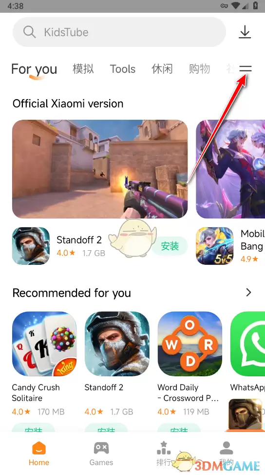 1、打开小米应用商店国际版,启动后默认显示的就是为你推荐的应用与游戏。