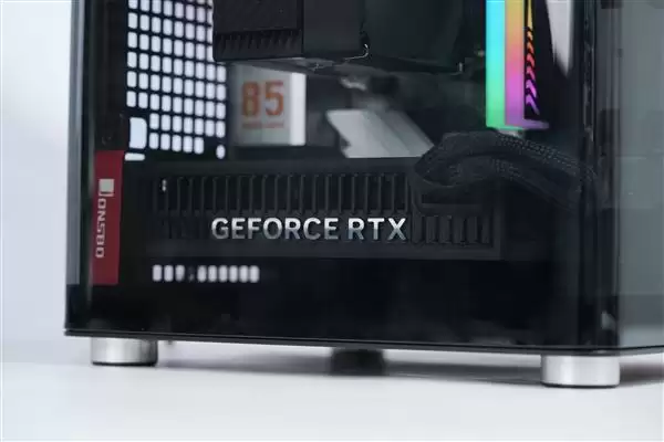 外观遵循工业风设计语言,通体沉稳雅黑配色,金属背板采用哑光黑处理,弱化指纹残留,侧面ARGB灯效可通过iGame"自在星球"软件调节。