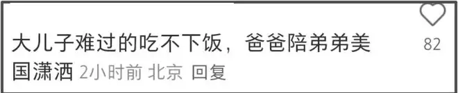 许何比许亚军的小儿子大9岁,看到许亚军在美国陪小儿子度假,让大儿子一人处理妈妈丧事,有网友直接怒骂许亚军冷血、凉薄,没礼数。同时,也希望大儿子许何能看清父亲的真面目。