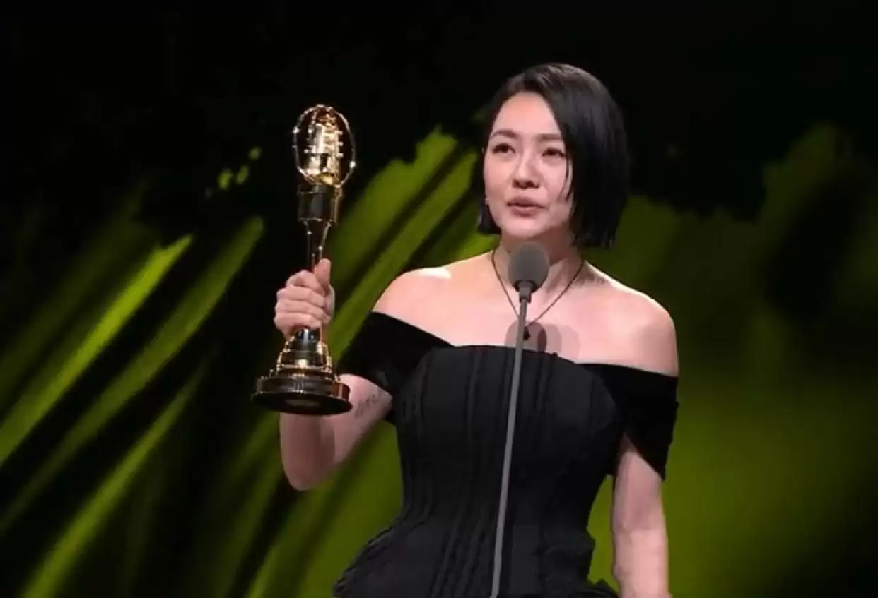 小S把金钟奖奖杯送到妈妈手中,S妈接过奖杯时双眼含泪。她为自己拥有如此优秀的女儿感到无比骄傲。
