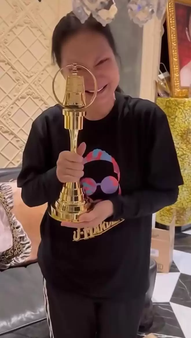 帮S妈录制视频的工作人员,从拆开包装到捧起奖杯,全程记录了下来。S妈小心翼翼地打开盒子,像对待珍宝一样轻轻捧起奖杯,一举一动都流露出对这份荣誉的珍视。