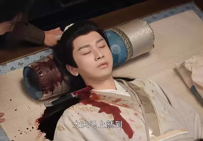遇刺桥段的另一处bug,还在伤口上,被刘子言刺中的是肩颈,刀柄穿透衣领。