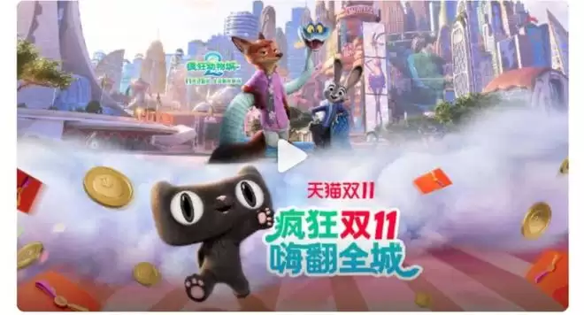 电影中“多元共生”的叙事,在线下被瑞幸的联名杯套、周大福的黄金吊饰、优衣库的“Zuniqlo”门店具象化为可触摸、可穿戴、可分享的生活实践。而在线上营销当中,品牌也不再是突兀的标识,而是化为故事里的一个角色、一种氛围、一段情绪,不管是大众汽车的动物化改装,还是天猫双十一的番外短片,都让商业行为自然融入了动物城的叙事逻辑。