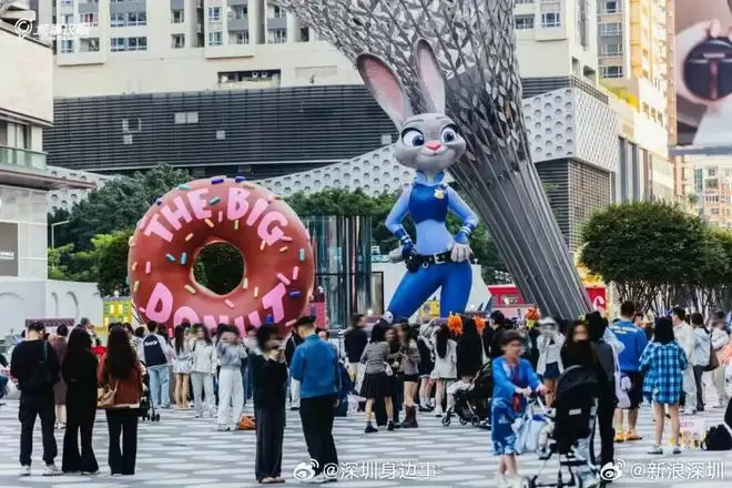 与此同时,与《疯狂动物城2》角色同框的热潮也同步在线下发生。比如在深圳福田区的One Avenue购物中心,一座高达8米的朱迪警官雕塑与巨大的“THE BIG DONUT”甜甜圈一同亮相;上海迪士尼乐园的疯狂动物城园区作为全球首个且唯一的疯狂动物城主题园区早已成为粉丝的朝圣地,新角色蛇盖瑞加入互动演出、热力追踪项目排起长队。