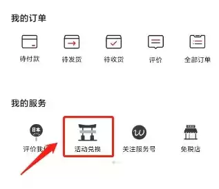 成功进入个人中心页面后,您会看到多个功能选项,请在其中找到并点击【活动兑换】。
