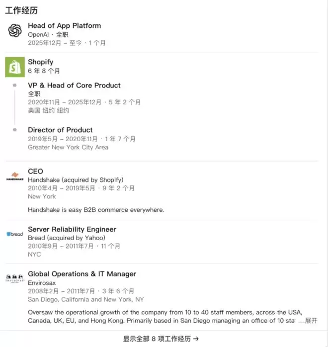 三、Shopify6年老将加盟OpenAI,担任应用平台主管