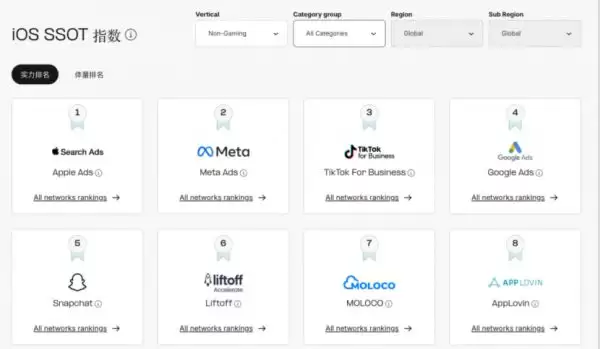 更值得注意的是预算结构变化。2025年移动广告预算整体回升,其中iOS端贡献了显著增量。报告显示,全球排名前五的媒体渠道中有60%实现了年度投放增长,而在第6至第10名的渠道中,这一比例高达80%。相比之下,中腰部以后的渠道生存空间受到挤压。