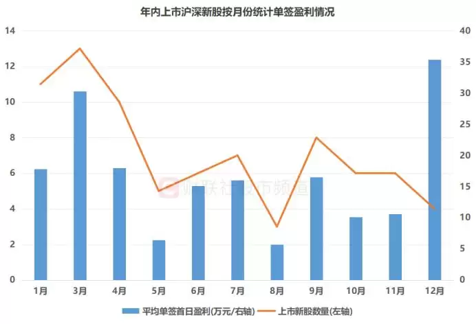 注:年内上市沪深新股按月份统计单签盈利情况(截至12月16日收盘)