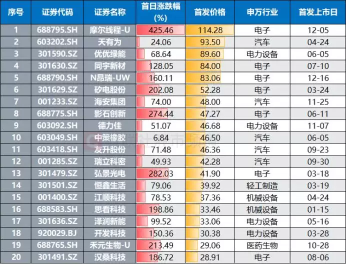 年内第二赚钱新股出炉,仅次于摩尔线程