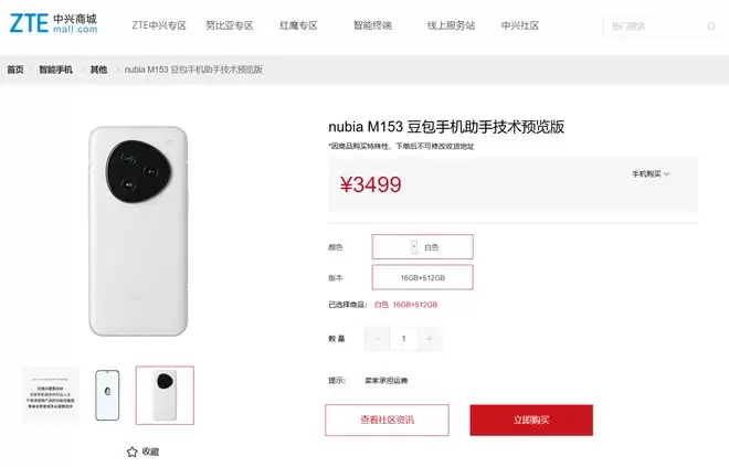 12月16日,根据中兴商城正式显示,豆包手机助手及合作机型nubiaM153目前已重启F码候补申请通道,正式恢复产品购买资格,16GB+512GB版本售价3499元。据nubiaM153 F码发放前