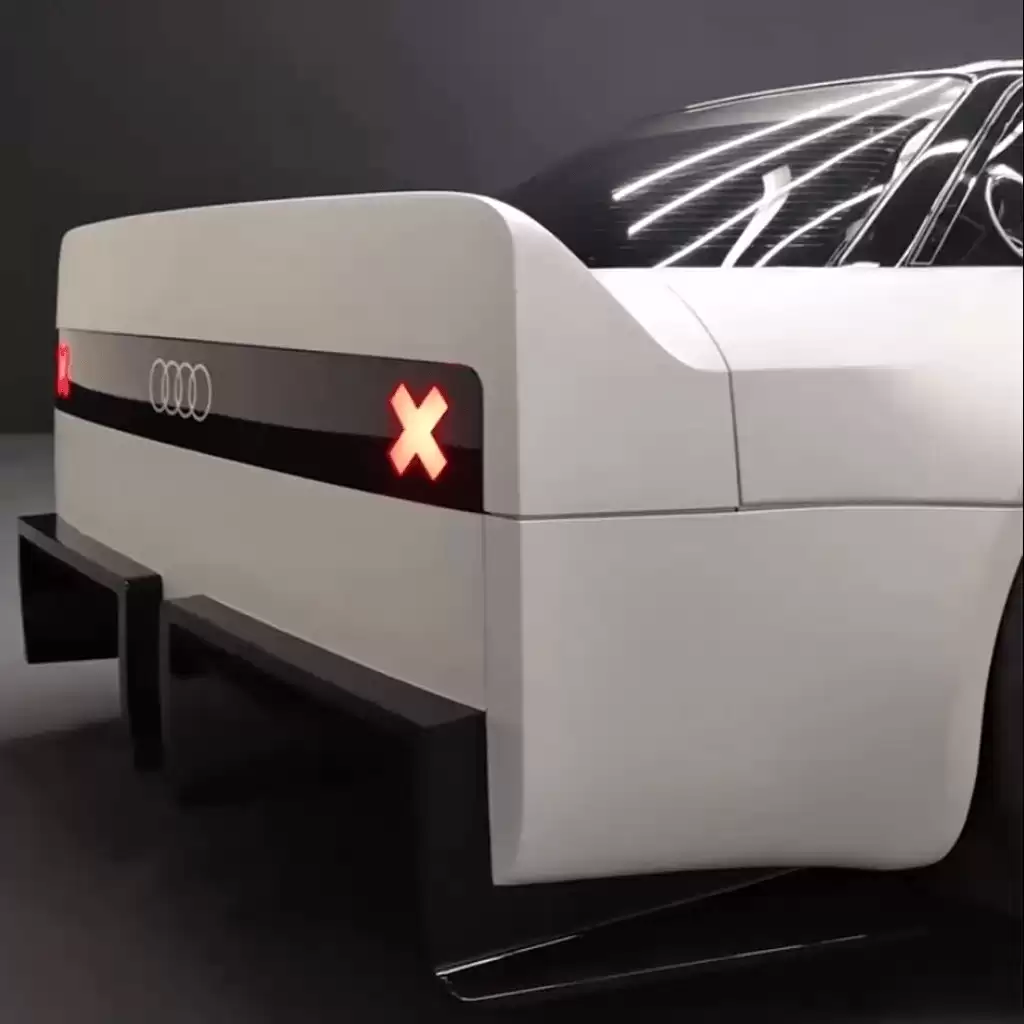 从外观设计来看,奥迪GT50概念车采用了极具辨识度的复古风格。车身线条硬朗且棱角分明,仿佛将人们带回了那个机械美学盛行的年代。车灯与前格栅的设计巧妙借鉴了奥迪经典车型的元素,但经过现代化的简化处理后,又增添了几分时尚气息。夸张的前后包围以及轮圈造型,则进一步强调了其赛车的身份与性能基因。