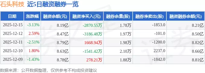 石头科技12月15日股价跌3.13%,主力与游资双双净流入