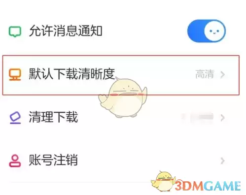 4. 在菜单中找到“默认下载清晰度”这一项,点击进入。