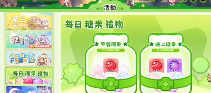 首要一点,就是千万别错过每天的免费糖果礼包。游戏里每天会分两个时段发放这波福利。中午12点的“糖果早餐”,能够领取50颗基础糖果。晚上18点的“糖果惊喜”则可以直接翻倍,不仅能拿到50颗基础糖,还额外附赠50颗限定糖果。这两个时间点完全不用刻意蹲守,只要当天登录就能领取,相当于白捡150颗糖果。日积月累下来,就是一笔不小的储备金。