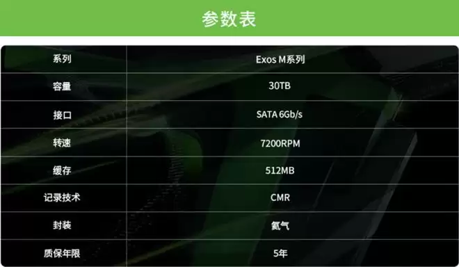 同时,希捷银河Exos M 30TB硬盘在功耗方面,还可以使用PowerChoice调整空闲功耗,或启用PowerBalance在功耗与IOPS之间取得平衡。此外,512 MB多段缓存设计可在突发负载下平滑数据传输,提升重度读写场景下的性能。30TB容量充分满足用户“大容量、预置、高性能、高可靠性”的存储需求。