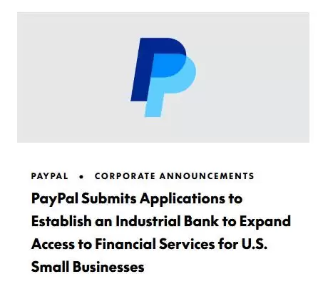 周一,PayPal Holdings, Inc. 正式宣布,公司已向犹他州金融机构部和联邦存款保险公司(FDIC)提交了正式申请,计划成立一家犹他州特许工业贷款公司(ILC),并将其命名为“PayPal银行”。