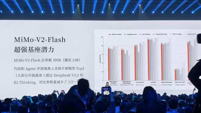 罗福莉特别提到,MiMo-V2-Flash模型并不大,但在代码和Agent测评基准测试中已经达到全球开源模型TOP2。