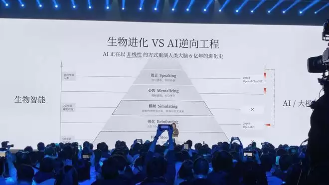 罗福莉一上台就回到了“6亿年前”,她说,AI正以非线性的方式重演人类大脑6亿年的进化史。
