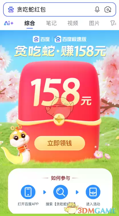 贪吃蛇赚现金158元红包:百度APP活动入口与玩法详解