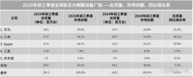 华为小米称霸全球穿戴市场,中国腕上设备销量领先