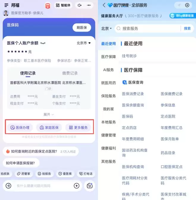 另一方面,蚂蚁集团在医疗合作网络上积累多年,也为阿福构建起完整的服务体系。从日常健康管理,到线上问诊、挂号购药、医保支付,正在逐步形成“健康+医疗”的一条龙服务。