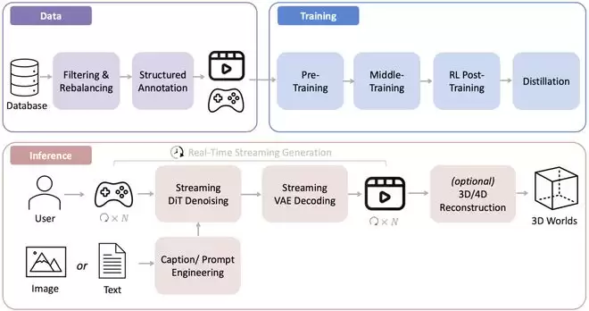 混元世界模型1.5的核心是一个名为WorldPlay的自回归扩散模型,它采用Next-Frames-Prediction的视觉自回归任务进行训练,实现了长范围几何一致性的实时交互式世界建模,突破了业界同时满足实时性与几何一致性的技术难题。