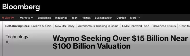 彭博社则称,Waymo此次融资规模将在150亿美元(约合人民币1065亿元)的级别,投后估值最高或将达到1100亿美元(约合人民币7810亿元)。
