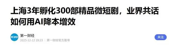 第一财经 2025-12-12 上海3年孵化300部精品微短剧,业界共话如何用AI降本增效